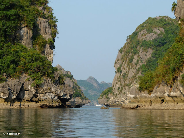 a découvert plusieurs petites baies avant de déboucher sur la baie d'Halong telle qu'on la souvent vue représentée. Mais pas de brume ici : un